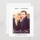 Bröllop-kortet för budgeterat, modernt och Elegant handskrivet skript Porträtt Lodrät Foto Spara datum. Datuminbjudan innehåller en typografi för chic och snyggt med en enkel och minimalistisk utformning på en vit bakgrund som du kan lägga till ditt anpassade förlovning-fotografi bild till.