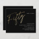Modern minimalistisk 50-års inbjudan med stilrent falskt guld folie nummer handskrivet skript Fifty och din festinformation i klassisk serif-teckensnitt på svart bakgrundsfärg, enkel och elegant, bra överraskning vuxen milstolpe födelsedagsinbjudan för män och kvinnor. den svarta bakgrundsfärgen kan ändras till valfri färg.