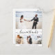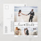 Elegantens budget "Kärlek and Tack" Hand skrev ut skript Heart-Elegant, minimalistisk Photo Collage Afforable Bröllop Tack PostCard i Black and White. En enkel söt bröllop-kortmall med fyra (4) foto på framsidan och ett foto på baksidan. Med texten "Kärlek och tack" i ett söt-handskrivet skrivteckensnitt för svan-typografi. Lägg till ditt namn och tack.