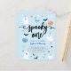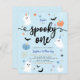 Budgetskämt ett sött baby blue spöke Halloween-festinbjudan. Modern Halloween-temad design för en scoky party! Den här födelsedagsinbjudan innehåller spindelns websar, spöken, pumpor, fladdermus, spindlar, löv, maj, stjärnor och daisy. Inbjudan är underbart för små pojkar!