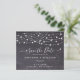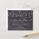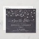 Save The Date! Meddela dina bröllop till vänner och familj med den här budgetens rustiska kalkylpanel och sträng ljus spara datumvykorten. Postkorten för budgetbröllopsinbjudan måste skickas som vykort för stora storlekar, så de kan få standardportoavgifter men behöver inte ett kuvert eller en returadressetikett. De här unika strängarna ljus och chalkboard-skiffer bröllop spara-korten kommer att ge ett bestående intryck. Dina gäster kommer att spara datumet! COPYRIGHT © 2020 Judy Burrows, Black Hund Art - Med alla Höger reserverade. Budgetsträng Ljus Rustic Bröllop spara datum vykort