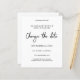 Spara pengar på formella inbjudningar med denna mindre inbjudan som har ett alternativ för kuvert. Ändra datumet för bröllop med den här Svartvitt-inbjudan. Liten version. Vill du ha en större version? Kolla in vår Ändra datum/plan-samling för kort. https://www.zazzle.com/collections/change_cancel_delay_wedding_announcements-119305647416996151?rf=238937196885903396