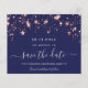 Ett giftigt och trendig Spara datum för en svensk 16, 16:e födelsedagsfest. En marin blå bakgrund med ro guld-stjärnor. Texten: Spara datumet skrivs med ett stort trendig-handskript i stil. Light grått färgad brev.