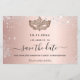 A Spara datumkortet för en svensk 16-årsdagars maskerad party. En metallisk tittar i ro guld bakgrund som dekoreras med faux silver glitter damm och en maskerad mask. Anpassa och lägg till datum och namn/ålder. Texten: Spara datumet skrivs med ett stort trendig-handskript i stil med dekortecken.