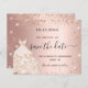 Ett giftigt och trendig Spara datumkortet för en svensk 16, 16:e födelsedagsfest. En snyggt ro guld-bakgrund som dekoreras med faux glitter, gnistor och en klänning. Anpassa och lägg till datum och namn/ålder. Texten: Spara datumet skrivs med ett stort trendig-handskript i stil.