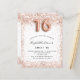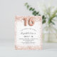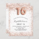 För en elegant 16, 16:e födelsedag. En vit bakgrund. Dekorerad med ro guld, rosa faux glitter, gnistor. Anpassa och lägg till information om namn och party. Namn är skrivet med ett handskript stil, nummer 16 med ballong stil typsnitt.