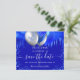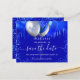 Ett trendigets royal blå bakgrund som dekoreras med royalets blå droppar, konfekt och ballonger. Anpassa och lägg till datum och namn/ålder. Texten: Spara datumet skrivs med ett stort trendig-handskript i stil.