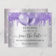 En faux silver tittar bakgrund som dekorerats med violett, lavender färgad faux glitter och ballonger. Anpassa och lägg till datum och namn/ålder. Texten: Spara datumet skrivs med ett stort trendig-handskript i stil.