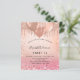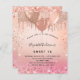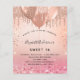 En övertoningsbakgrund för ro guld och rosa. Dekorerad med ro guld, rosa faux glitter, färgdroppstift och ballonger. Anpassa och lägg till information om namn och party. Namn är skrivet med ett handskript i stil