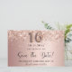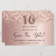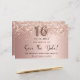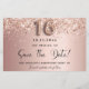 Ett giftigt och trendig Spara datumkortet för en svensk 16, 16:e födelsedagsfest. Metallisk bakgrund i ro-guld tittar dekorerad med ro faux-damm från glitter. Anpassa och lägg till datum och namn/text. Texten: Spara datumet skrivs med ett stort trendig-handskript i stil med dekortecken. Nummer 16 med ett stil-teckensnitt med ballong.