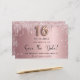 Ett giftigt och trendig Spara datumkortet för en svensk 16, 16:e födelsedagsfest. rosa faux metallisk tittar bakgrund som dekorerats med droppar och stoft från rosa och faux silver glitter. Anpassa och lägg till datum och namn/text. Texten: Spara datumet skrivs med ett stort trendig-handskript i stil. Nummer 16 med ett ro guld färgad-stil-typsnitt.