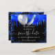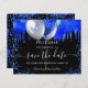 En svart bakgrund som dekoreras med royalets blå droppar, konfekt och ballonger. Anpassa och lägg till datum och namn/ålder. Texten: Spara datumet skrivs med ett stort trendig-handskript i stil.