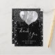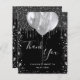 Tack för en svensk 16-årsdag. En chic svart bakgrund färg. Med faux silver glitter droppar, färgdroppstift och ballonger. På stora bokstäver och text framtill: Tack, text, titel och datum. Tillbaka: Anpassa och lägg till tackkort och namn.