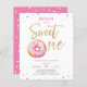 Budgetsöt en rosa guld donut sprinkles flicka på födelsedagsinbjudan.