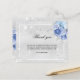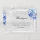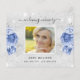 En enkel sympati och elegant tack för att du fick ett kort med foto. En faux silver metallisk tittar bakgrund, ett vitt ram, faux glitter damm, blått ro, blommigt. Anpassa och lägg till tackkortet. Svart text.