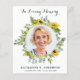 Modern solrossolrossolrosfärgad Blommigt och eukalyptus Sympati Fotobegravning - tack. Dessa sympatikort för begravning har en unik fotomall i solros och eukalyptus grey wans, namn och data, på en modern vit design. Anpassa dig med ditt tack. Dessa minneskort är perfekter för begravning av tackkort eller firande av livets tackkort. COPYRIGHT © 2020 Judy Burrows, Black Hund Art - Med alla Höger reserverade. Budgetsympati Solrosfoto Funeral Tack