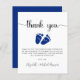 Tacka dina gäster för baby shower med detta prisvärda söta tackkort med "tack" i en stilren script med svängar och en marinblå vattenfärg av babyns fötter. Under kan du enkelt anpassa ditt tackmeddelande eller lämna det tomt för en handskriven hälsning.
