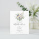 En stilren budgetbröllopsinbjudan med en vacker lantlig posy av vildblommor sitter ovanför din bröllopsinformation i elegant text. Baksidan har en matchande bakgrundsfärg som kan anpassas till din favoritfärg. Designad av Thisisnotme©