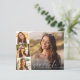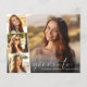 Budgetvänlig och elegant studenten meddelande och partiinbjudan med student-fotot överlagrad med tre mindre fyrkantiga foton, "student" i ett modernt vitt skript och deras namn och klassår i ren vit typografi. Lägg till informationen om party på baksidan.