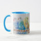 Budgies Three Sitta Gren Watercolor Mugg Blue, med ett helt anpassade namn. En strålande vattenfärgsdesign för roligten. Designade från mina ursprungliga vattenfärgade målningar, som jag målade från min egen blomsterträdgård.