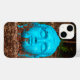 Skyddshölje som är designat för en iPhone och som särskilt visar ett blått Buddha-huvud som dess primära teckning. Den här utformningen är en del av en samling av konstnären Mark Ashkenazi, känd för att ha inbyggt Buddha-bilder i olika konstformer, inklusive telefonfodral.