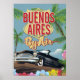 Buenos Aires, reseaffisch för Retro stil med en klassisk svart bil.