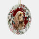 På framsidan av denna Helgdag är bilden av en vacker amerikansk Cocker-spanjor-Hund. Porträtt ligger på en röd julbakgrund och är inramad i en rustik skugga, rött bär, vit blommigt och grönt löv. På baksidan står GOD JUL och GOTT NYTT ÅR i grönt. Texten står i anpassadet fält, så du kan få det att stå spelar ingen roll att du vill.