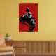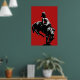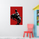 Vår slående poster utskrift bygger på en staty av Vilda western showman Buffalo Bill Cody i Dennistoun, Glasgow, Skottland, Förenade kungariket, av hela ställe. Buffalo Bill arrangerade en Vilda western där 1891 tillsammans med Annie Oakley. Bill och hans häst silhuetteras i svart och behandlas med en blek blå tvätta på djup röd bakgrund.