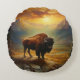 Buffalo Bison Sunset Silhouette Rund Kudde