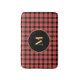 Det här badmattan i anpassadet är förnimmad med en modifierad version av en klassisk buffelkontroll mönster i rött och svart med en gult linjens accent. Den här designen skapades med en SVG-bild i vilken inslag i sin helhet samt färg i cirkel och monogram som köparen kan anpassa till varje nyans för att samordna med sin markering.