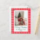 din fräckhet med en personlig i julhelgen! Detta klassiska vykort för God jul har en varm och inbjudande design med ett tidlöst rött och vitt plaid gräns, som påminner om buffelcheck eller gingham. Huvudfokus ligger på fotot i din roligt-familj, som är inställt i ett skarpt vitt ram. Anpassa kortet enkelt med din favoritfamilj bild, din familj namn och året. Det traditionella skriptteckensnittet för grönt för "God jul" kompletterar den festive färg paletten. Det är perfekten att skicka varma semesterhälsningar och en snyggt till vänner och familj. Perfekt för vilken familj som helst tittar för en klassisk, mysigt och vibrerande design.