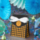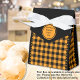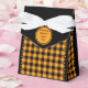 Svart och orange buffelrutig presentkartong för tält. Texten kan anpassas. Om du använder knappen/verktyget "Redigera design" kan du även lägga till egna bilder/fotografier. Andra färger, former och kartongstorlekar finns tillgängliga.