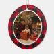 Add cozy rustic charm to your holiday décor with this red and black buffalo plaid Christmas ornament. Featuring a heartwarming family moment by the fireplace and Christmas tree, this timeless keepsake is perfect for celebrating togetherness. Customize with your own photo and family name to create a unique holiday treasure. Ideal as a Christmas gift, tree decoration, or family memory ornament to cherish year after year.