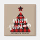 Kraft-bakgrund med buffalo plaid Julgran och vismskript "God jul" tillsammans med information i elegant serif-teckensnitt. Skaffa den där orubbliga känslan och blanda och matcha objekten från den här samlingen för en perfekt julklapp.
