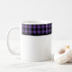 This ceramic coffee mug is shown with a lovely black and purple color buffalo plaid.