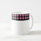 This ceramic coffee mug is shown with a lovely black and pink color buffalo plaid.