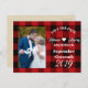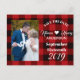 Röda buffalo plaid Rustic vinterbröllop spara datumvykorten. Vintage lumberjack-fotokort för bröllop.