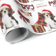 Det upprepade mönster på denna söta julomslutning är en bild av en vacker Beagle-valp med en röd och vit julhatt, med en svart och röd buffelpuckel bakom sig, och en samordnande gåva paket med ett guld-band bredvid honom. Det finns också en buffelbåge och matchande text som säger "JOY". God jul" står i den smidda texten från buffelstolpe, och din egen namnteckning finns i två fält för att du ska kunna anpassa den.