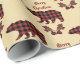 En röd och svart buffel tryckt silhuette-björn kombinerar med en passande akorn och löv för att bilda ett attraktivt mönster på denna Helgdag som är papper. Att separera det upprepade bilder är ett matchande rött skript som säger "God jul". Mönster har en lätt bakgrund i guld för att bilda en unik och rustik tittar jultid papper. Se till att se matchande produkter i vår butik.