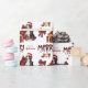 Det upprepade mönster på denna söta julomslutning är en bild av en Bernesisk Hund med röd och vit julhatt, med en svart och röd buffelkudde bakom sig, och en samordnande gåva paket med ett guld-band bredvid honom. Det finns också en buffelbåge och matchande text som säger "JOY". God jul" står i den smidda texten från buffelstolpe, och din egen namnteckning finns i två fält för att du ska kunna anpassa den.