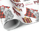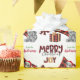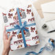 Det upprepade mönster på denna söta julomslutning papper är en bild av en blå Merle Australian shepherd Hund med röd och vit julhatt, med en svart och röd buffelpuckel bakom sig, och en samordnande gåva paket med ett guld-band bredvid honom. Det finns också en buffelbåge och matchande text som säger "JOY". God jul" står i den smidda texten från buffelstolpe, och din egen namnteckning finns i två fält för att du ska kunna anpassa den.