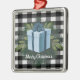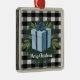 Dekorera Julgran i julhelg med en Buffalo Play-julklapp Helgdag Ornament. Den dekorerade designen har en omsluten julklapp med slitsbredd mot en svart och vit gingham-bakgrund. Ytterligare presentartiklar och helgdag som är tillgängliga med den här designen också.