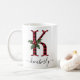Svarta och röda Buffalo Play K Monogram Julafton-kaffe Mugg med söt A-brev med buffalo plaid mönster och mistletoe vattencolor inslag. Den anpassade namnmallen under K-monogrammet finns i ett snabbt handskrivet calligrafteckensnitt med blomning. Ge är en tankfull personlig jul-mugg som en vintergåva eller helgdag. Om du vill ha ett annat monogram kan du checka ut avsnittet "Övriga produkter från denna samling" nedan.