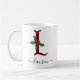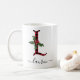 Svarta och röda Buffalo Play L Monogram Julafton Kaffe Mugg med söt A-brev med buffalo plaid mönster och mistletoe vattencolor inslag. Den anpassade namnmallen under L-monogrammet finns i ett snabbt handskrivet calligrafteckensnitt med blomning. Ge är en tankfull personlig jul-mugg som en vintergåva eller helgdag. Om du vill ha ett annat monogram kan du checka ut avsnittet "Övriga produkter från denna samling" nedan.