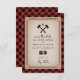 En inbjudan till elegant och rustik bröllop spara datum med en buffelbaksida och en monogramdesign av yxan.