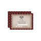 En rustic och elegant bröllop r.s.v.p.-inbjudan som innehåller en monogramformad yxkonstruktion och en röd och svart buffelbaksida.