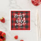 Helgdag papper napkin har röd buffelkontroll med det vita penselskriptet "baby it is kall out"-typografi. Ett trendig till julfesten.