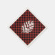 Napkins med rött och svart arv (buffalo) satte mönster på framsidan. Centrera har en vit illustration av en pekton.