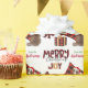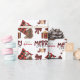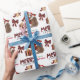 Det upprepade mönster på denna söta julomslutning papper är en bild av en röd och vit Hund Australian shepherd som bär en julhatt, med en svart och röd buffelkudde bakom sig, och en samordnande gåva paket med ett band från guld bredvid honom. Det finns också en buffelbåge och matchande text som säger "JOY". God jul" står i den smidda texten från buffelstolpe, och din egen namnteckning finns i två fält för att du ska kunna anpassa den.