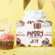 Det upprepade mönster på denna söta julomslutning är en bild av en sankt Bernard-Hund som bär en röd och vit julhatt, med en svart och röd buffelkudde bakom sig, och en samordnande gåva till paket med ett guld-band bredvid honom. Det finns också en buffelbåge och matchande text som säger "JOY". God jul" står i den smidda texten från buffelstolpe, och din egen namnteckning finns i två fält för att du ska kunna anpassa den.